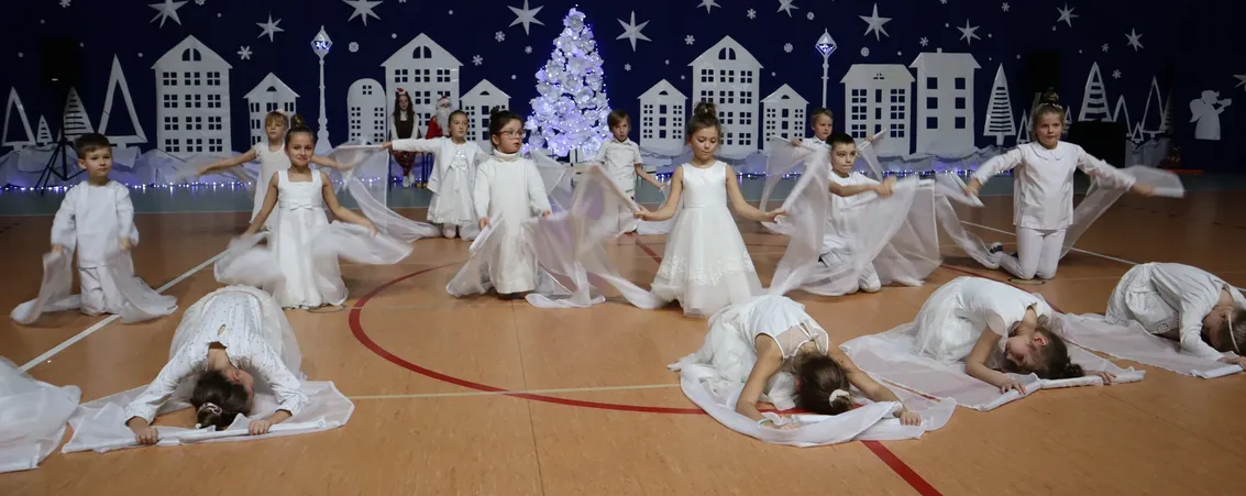 Goście wydarzenia, których przywitał mgr inż. Leszek Sobieraj, dyrektor szkoły podziwiali przepiękne dekoracje, grę świateł i kostiumy małych artystów a przede wszystkim zachwycili się występami uczniów klas 0-3, którzy wykonali przedstawienia teatralne i piosenki świąteczne. Wstążki, pompony, świecące peleryny, lampiony, świece elektryczne to tylko część rekwizytów, które urozmaiciły niezwykle ciekawe i poruszające występy.