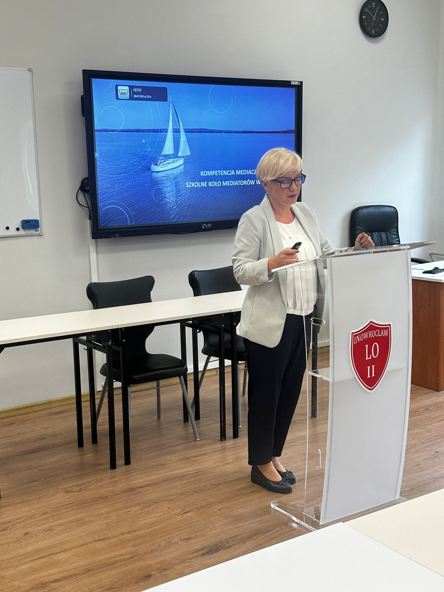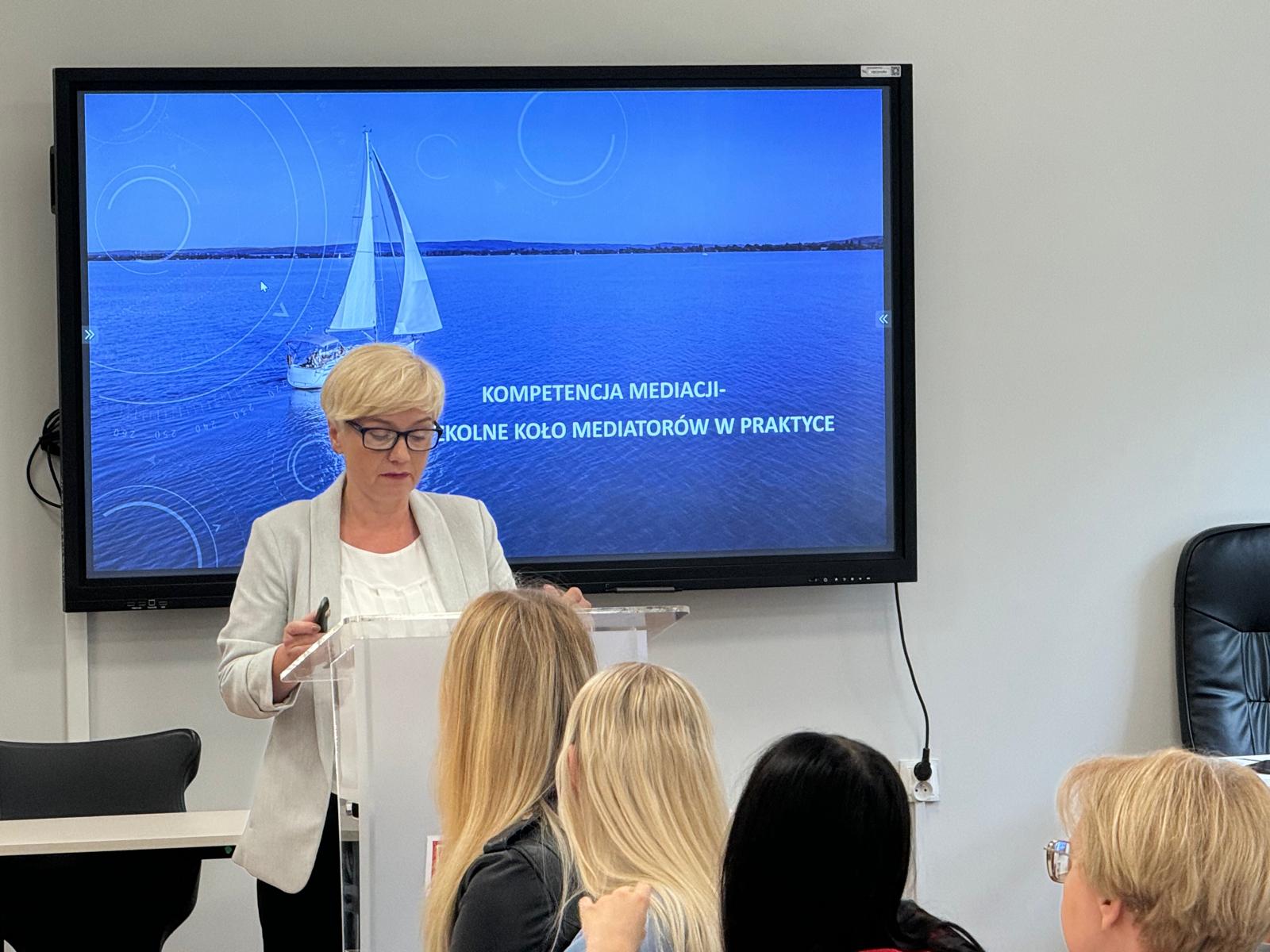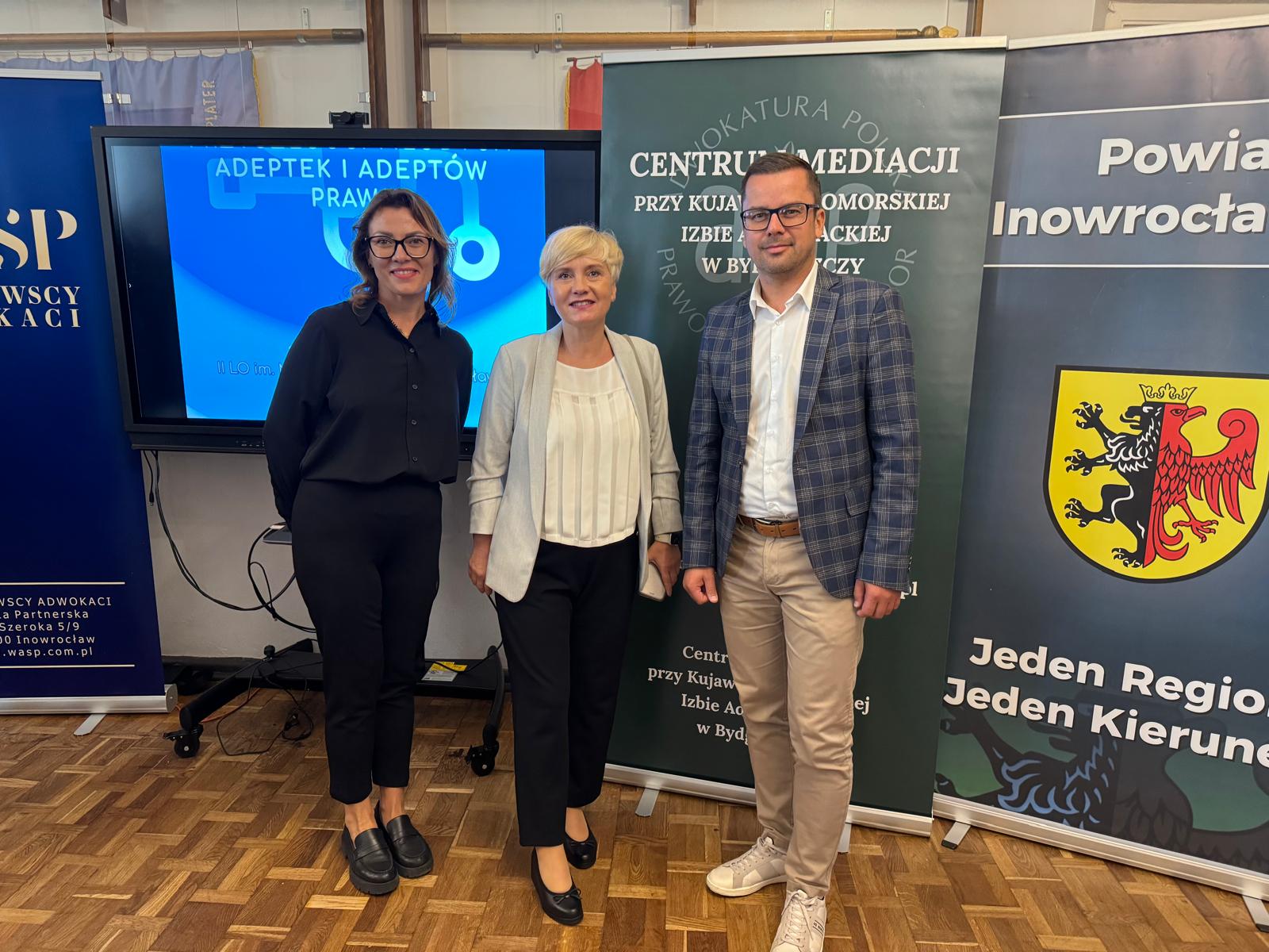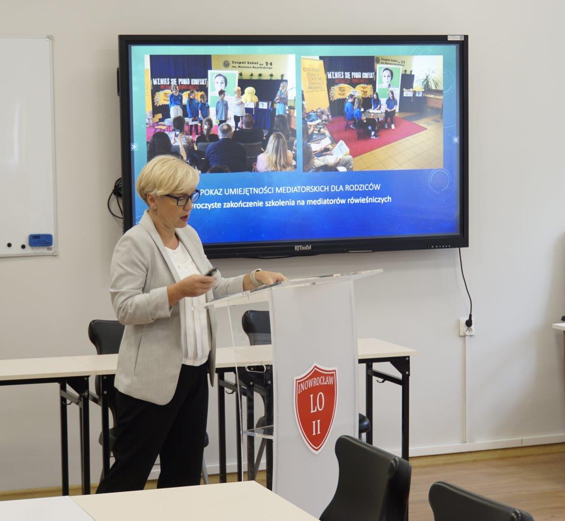 Centrum Mediacji Szkolnej i Edukacji Prawnej im. Kamili Wyrębskiej miało zaszczyt uczestniczyć w konferencji „Kompetencje przyszłości młodych adeptek i adeptów prawa”, która odbyła się 2 października 2024 w II Liceum Ogólnokształcącym w Inowrocławiu. Podczas wystąpienia koordynator Centrum pani Anna Wiśniewska przedstawiła działalność kółka mediatorów rówieśniczych w Zespole Szkół nr 24 w Bydgoszczy, a także zakres działań naszego Centrum.