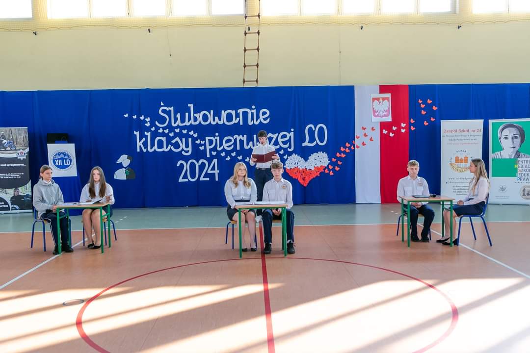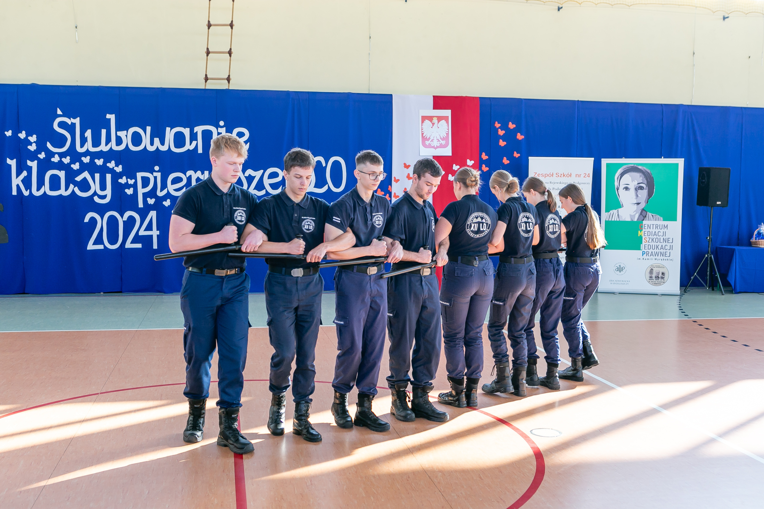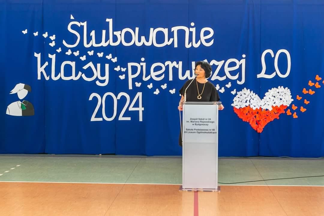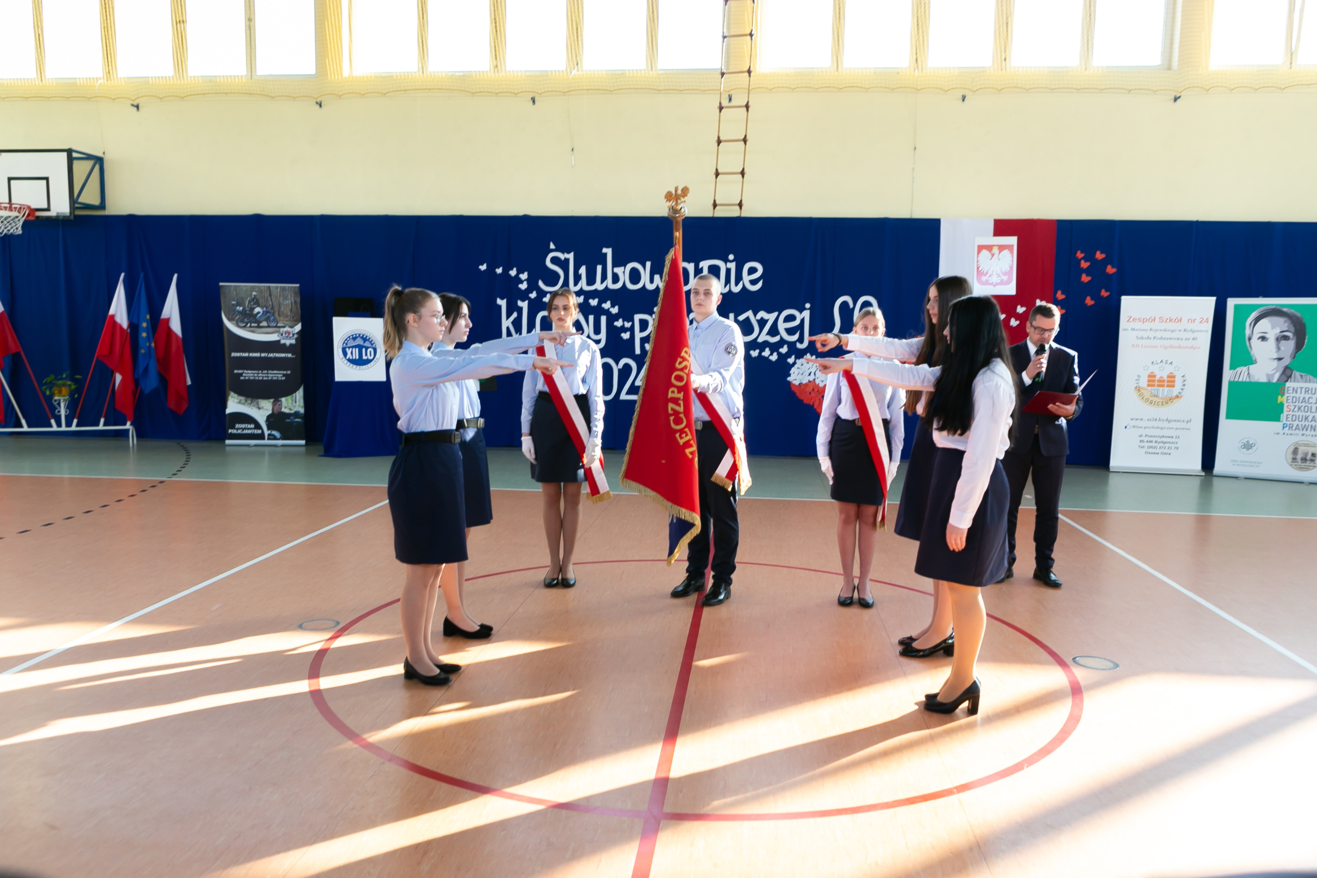 Uczniowie klas pierwszych złożyli słowa przysięgi: ,,Ja, uczeń Zespołu Szkół nr 24 ślubuję przestrzegać prawa Rzeczypospolitej Polskiej, strzec symboli narodowych, dbać o kulturę języka polskiego, rzetelnie wypełniać obowiązki ucznia, systematycznie zdobywać wiedzę, rozwijać swoje zainteresowania, przestrzegać statutu szkoły, aktywnie uczestniczyć w życiu klasy oraz godnie reprezentować szkołę.”