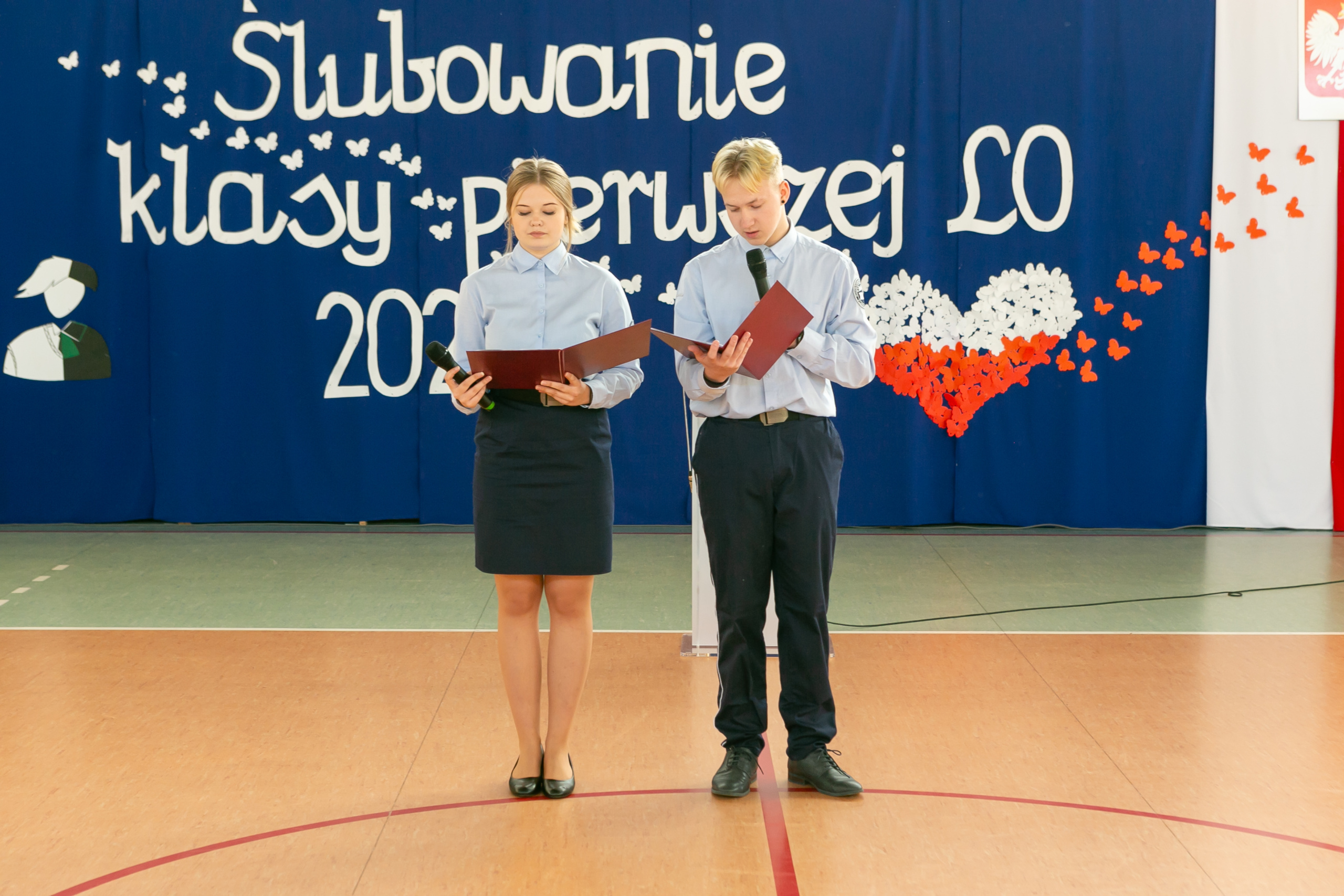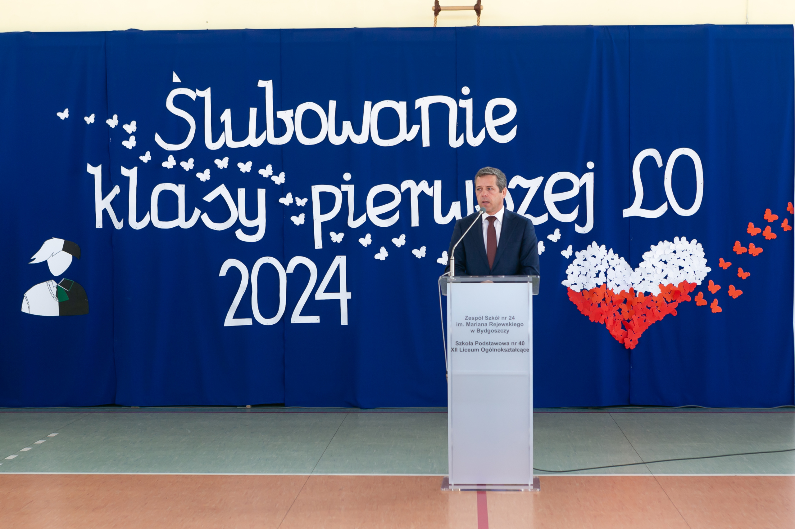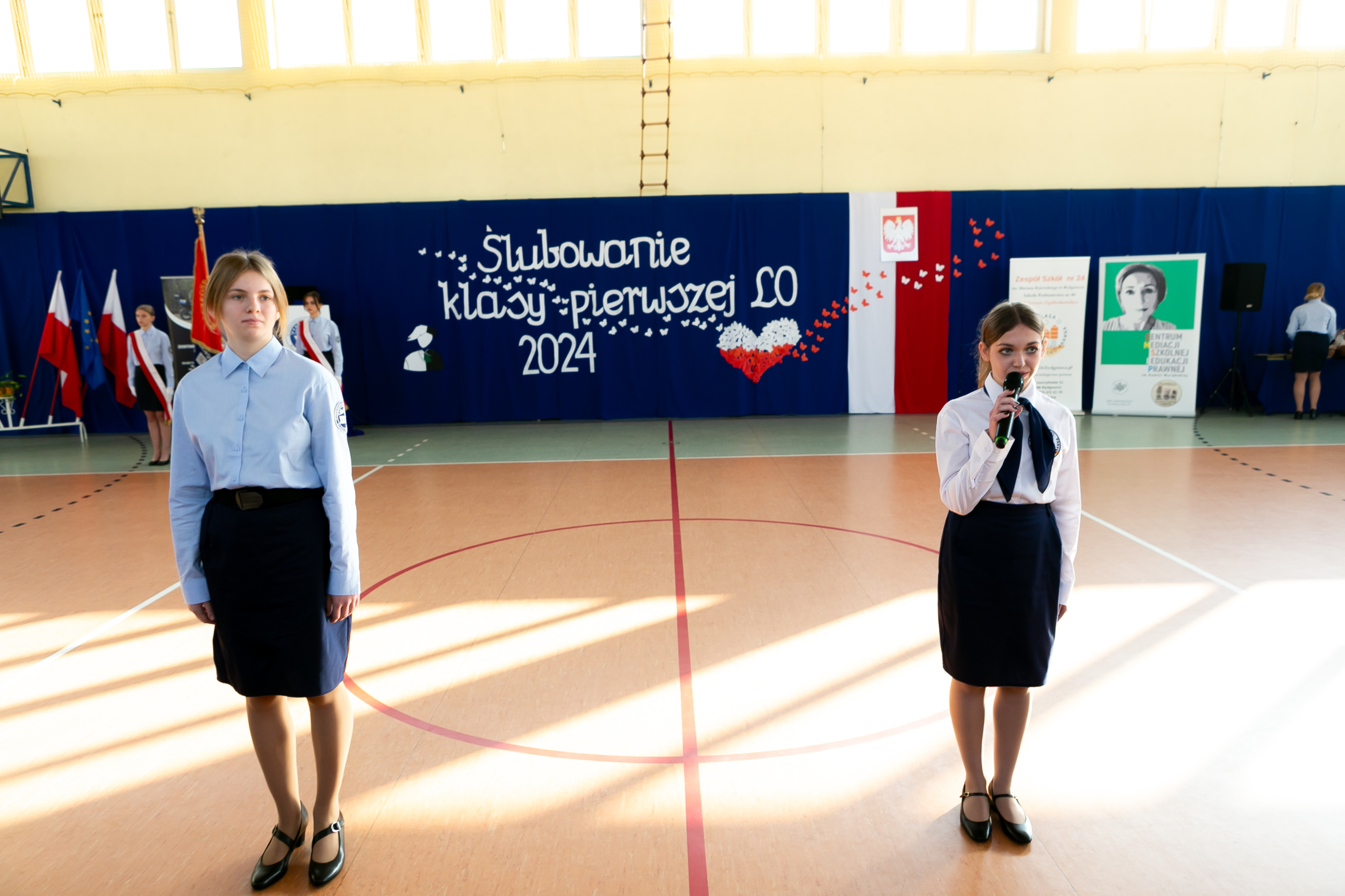 Uczniowie klas pierwszych złożyli słowa przysięgi: ,,Ja, uczeń Zespołu Szkół nr 24 ślubuję przestrzegać prawa Rzeczypospolitej Polskiej, strzec symboli narodowych, dbać o kulturę języka polskiego, rzetelnie wypełniać obowiązki ucznia, systematycznie zdobywać wiedzę, rozwijać swoje zainteresowania, przestrzegać statutu szkoły, aktywnie uczestniczyć w życiu klasy oraz godnie reprezentować szkołę.”