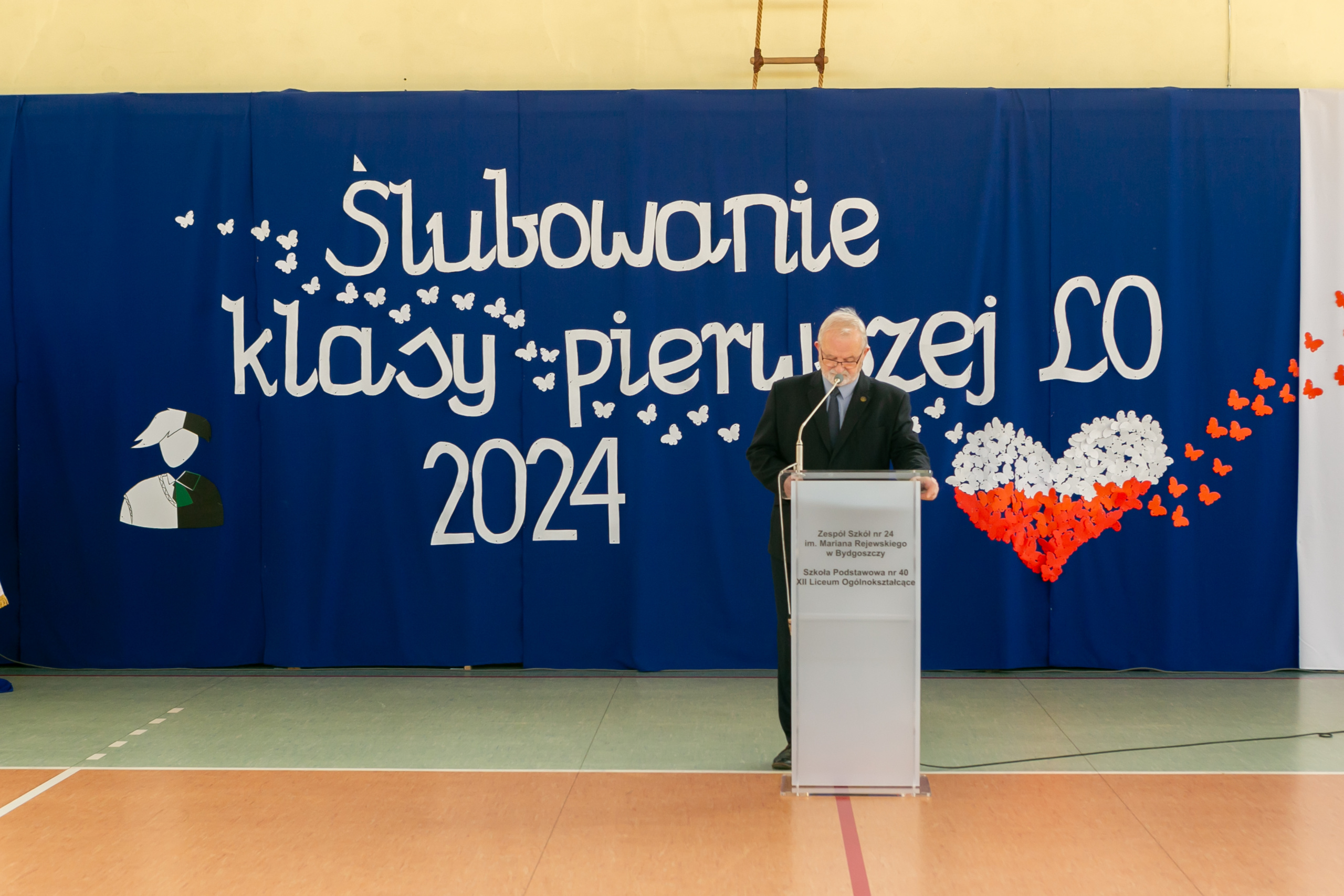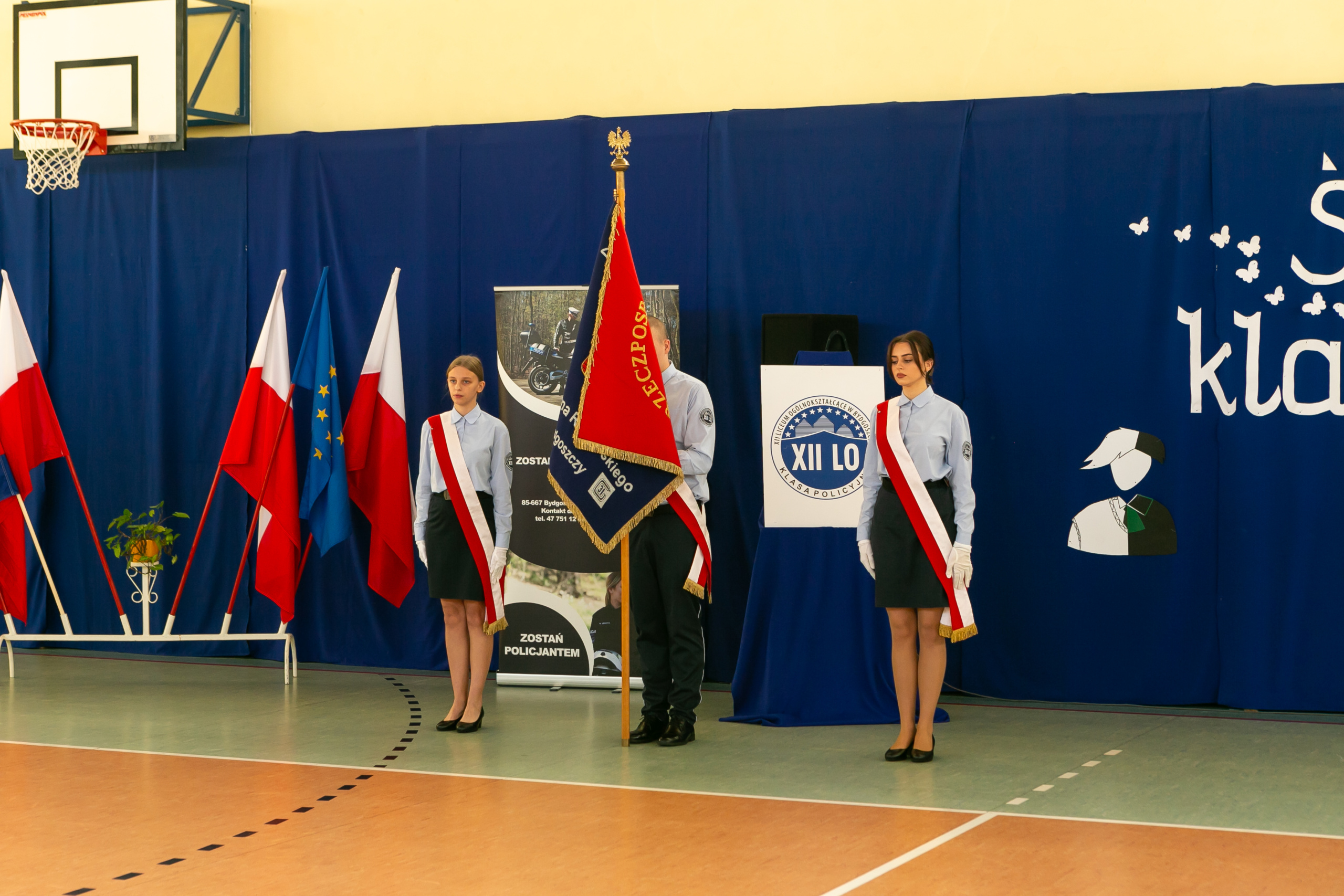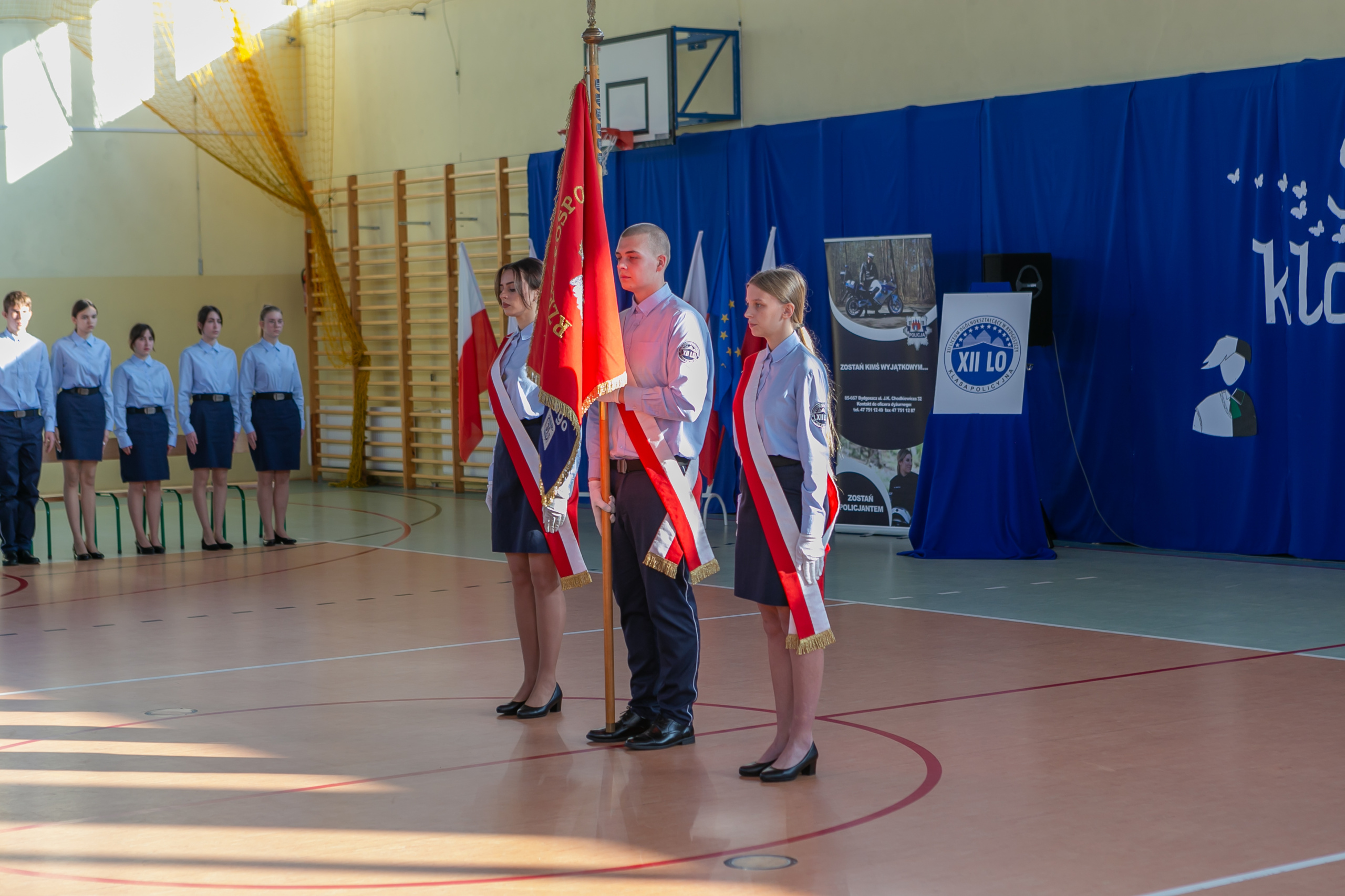 Uczestników wydarzenia powitał Dyrektor szkoły mgr inż. Leszek Sobieraj. W swoim wystąpieniu zwrócił uwagę na doniosłość tego dnia w życiu uczniów XII LO, a także na fakt, iż edukacja policyjna i psychologiczno-prawna może stanowić ważny bonus w ich późniejszej karierze zawodowej. Wszyscy przemawiający życzyli pierwszoklasistom, aby nauka w naszym liceum zaowocowała wiedzą i nowymi umiejętnościami, przyniosła im dużo satysfakcji oraz pozostawiła wspaniałe wspomnienia.