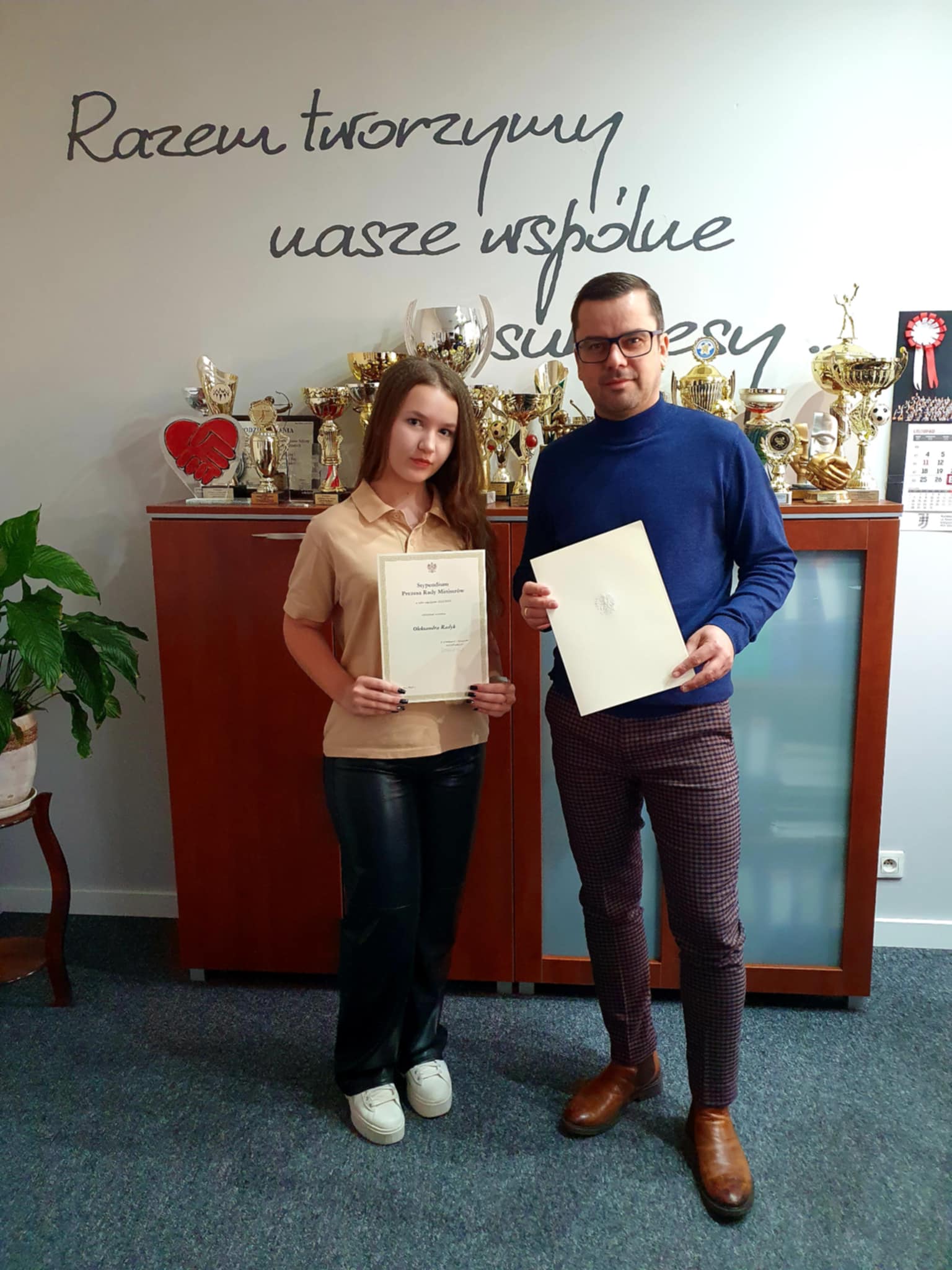 Z ogromną radością i dumą informujemy, że Oleksandra Radyk, uczennica XII Liceum Ogólnokształcącego z klasy IIB o profilu psychologiczno-prawnym, została wyróżniona prestiżowym Stypendium Prezesa Rady Ministrów za wybitne osiągnięcia w nauce.