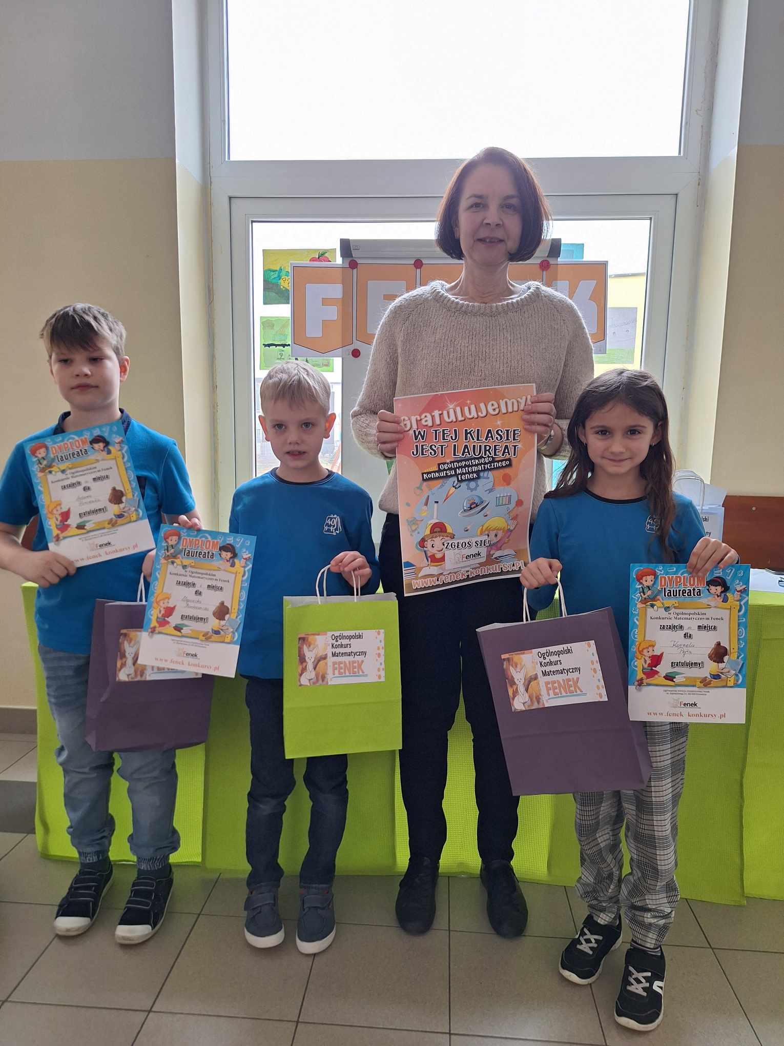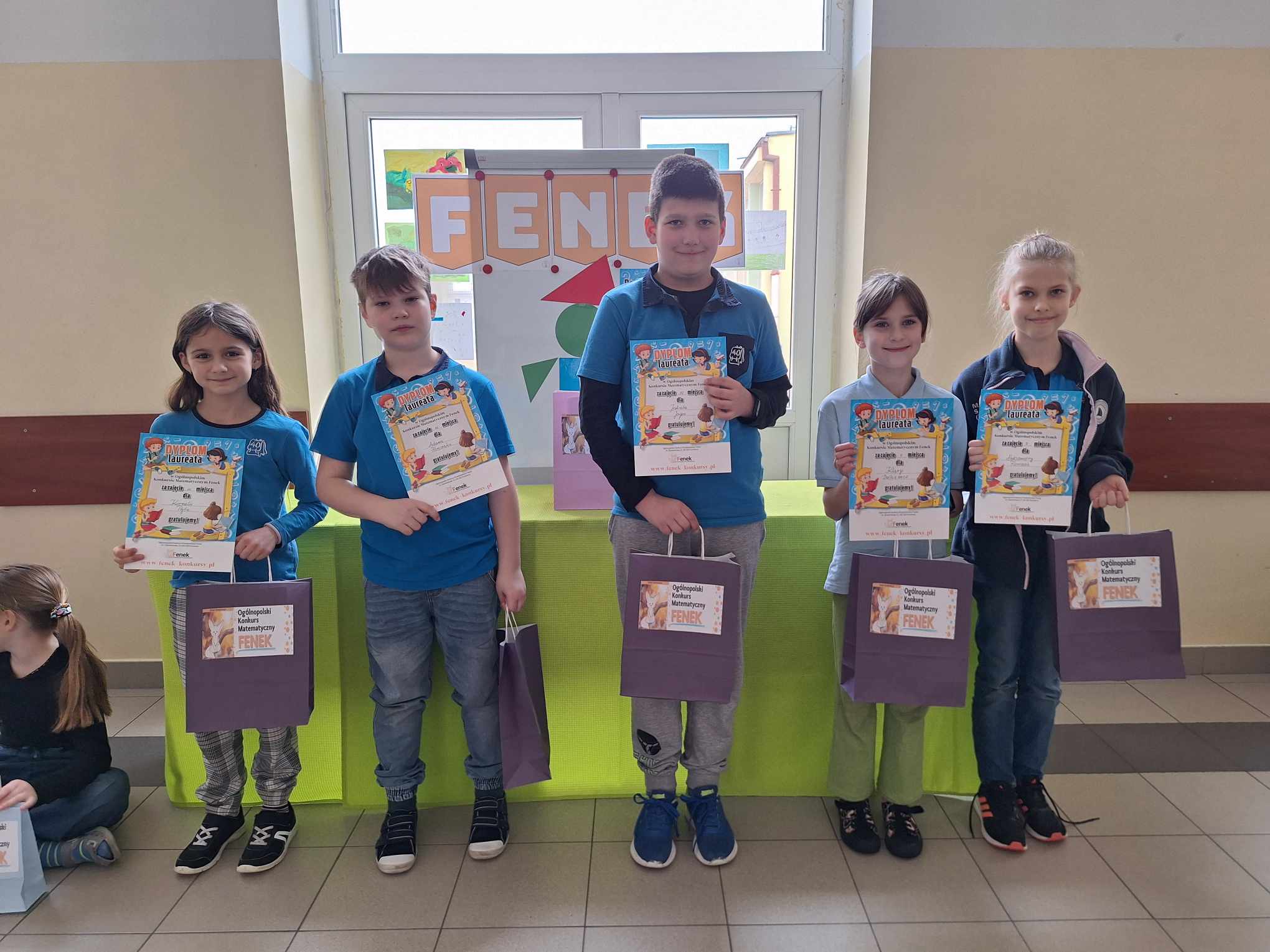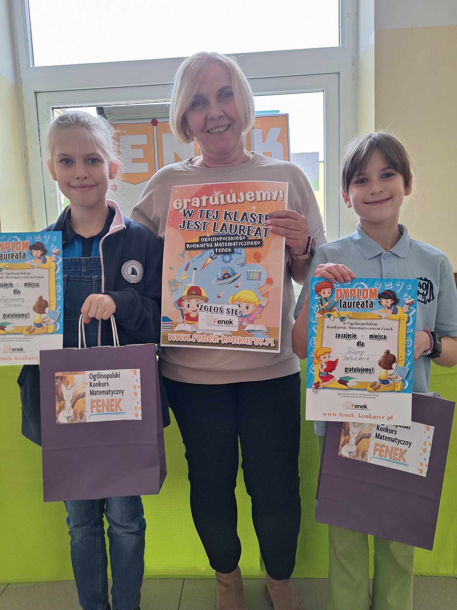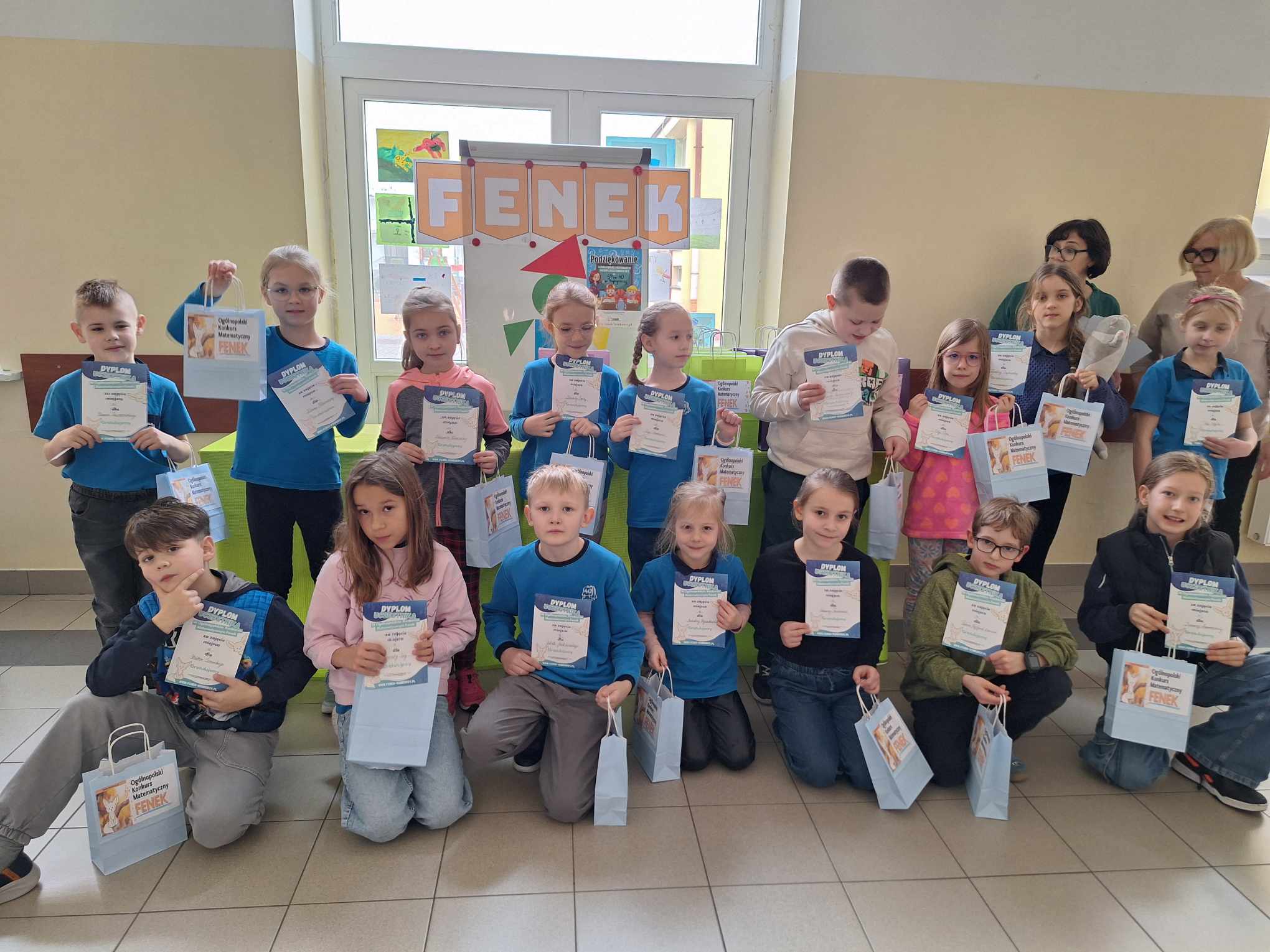 Z ogromną przyjemnością informujemy, że dzisiaj odbyło się uroczyste wręczenie nagród i dyplomów laureatom i uczestnikom Ogólnopolskiego Konkursu Matematycznego FENEK. W konkursie wzięło udział bardzo dużo uczniów z klas 1-3. Uczestnicy rywalizowali w trzech kategoriach wiekowych, rozwiązując zadania o różnym stopniu trudności.