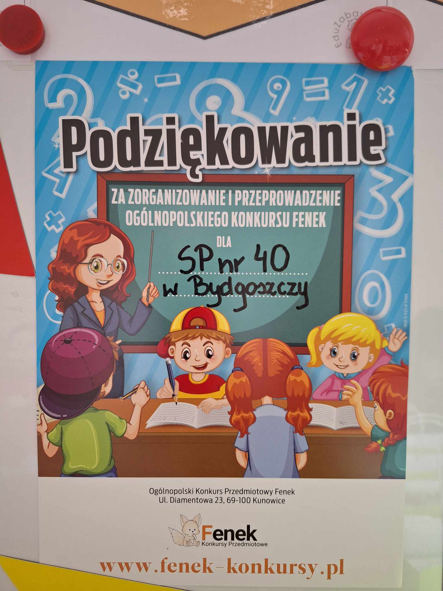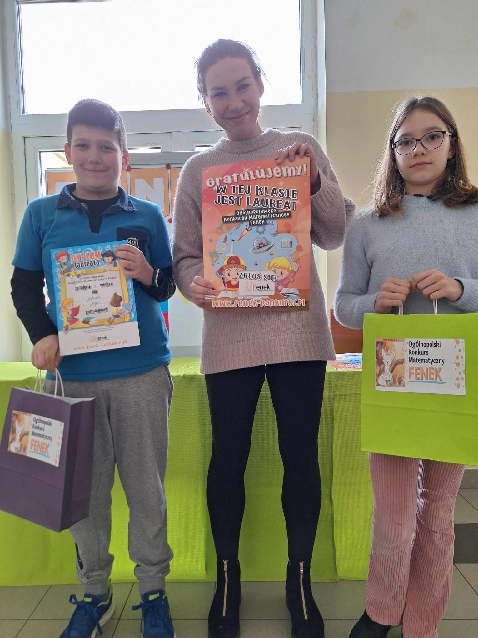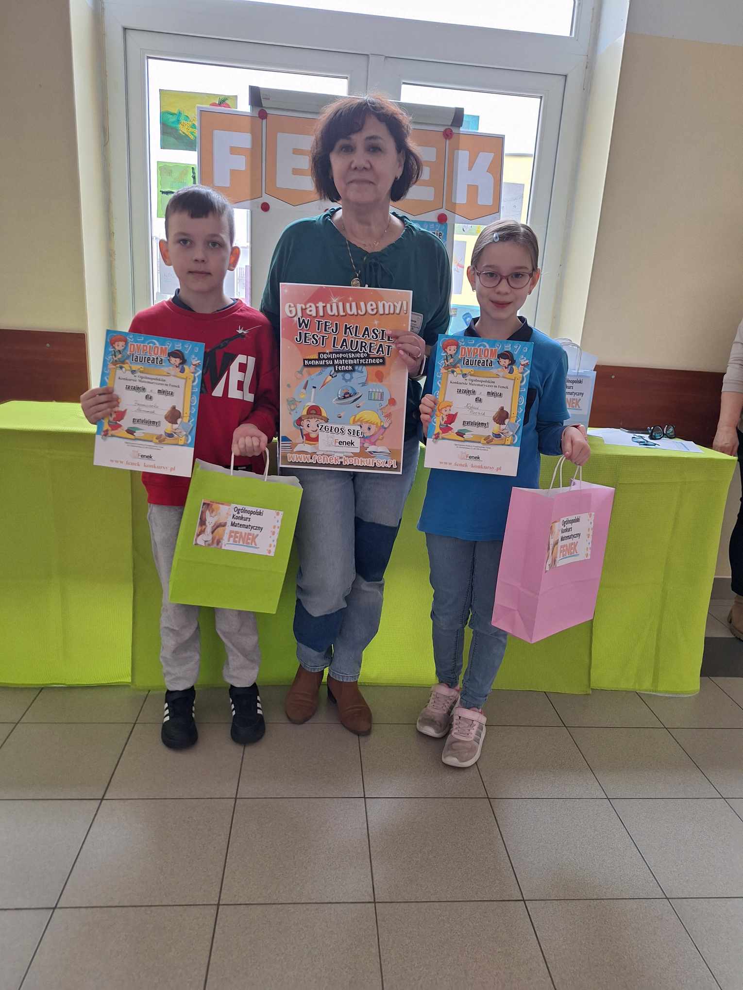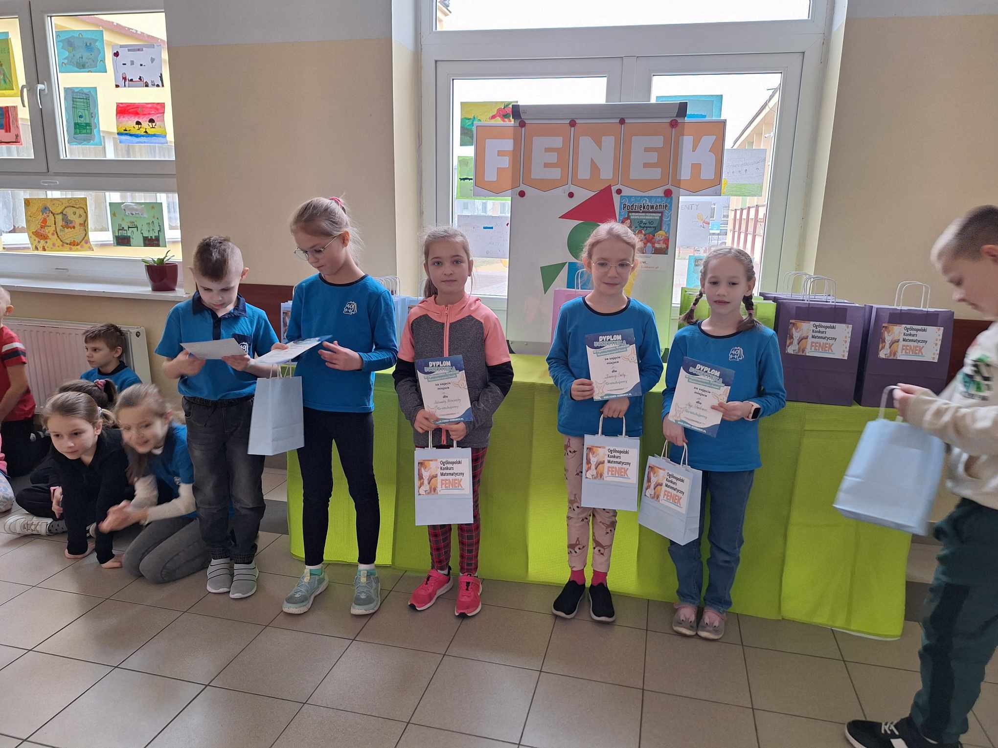 Z ogromną przyjemnością informujemy, że dzisiaj odbyło się uroczyste wręczenie nagród i dyplomów laureatom i uczestnikom Ogólnopolskiego Konkursu Matematycznego FENEK. W konkursie wzięło udział bardzo dużo uczniów z klas 1-3. Uczestnicy rywalizowali w trzech kategoriach wiekowych, rozwiązując zadania o różnym stopniu trudności.