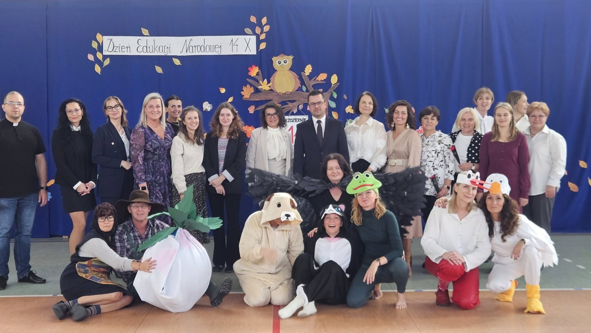 Ciepłe i pełne humoru słowa skierował również do zebranych Dyrektor szkoły, pan Leszek Sobieraj. Następnie przyszła pora na mniej oficjalną część, niespodziankę – specjalny występ muzyczny nauczycieli do melodii „Mój przyjacielu” Krzysztofa Krawczyka. Własna, żartobliwa wersja piosenki o codziennych szkolnych realiach wywołała uśmiech na twarzach wszystkich obecnych.
