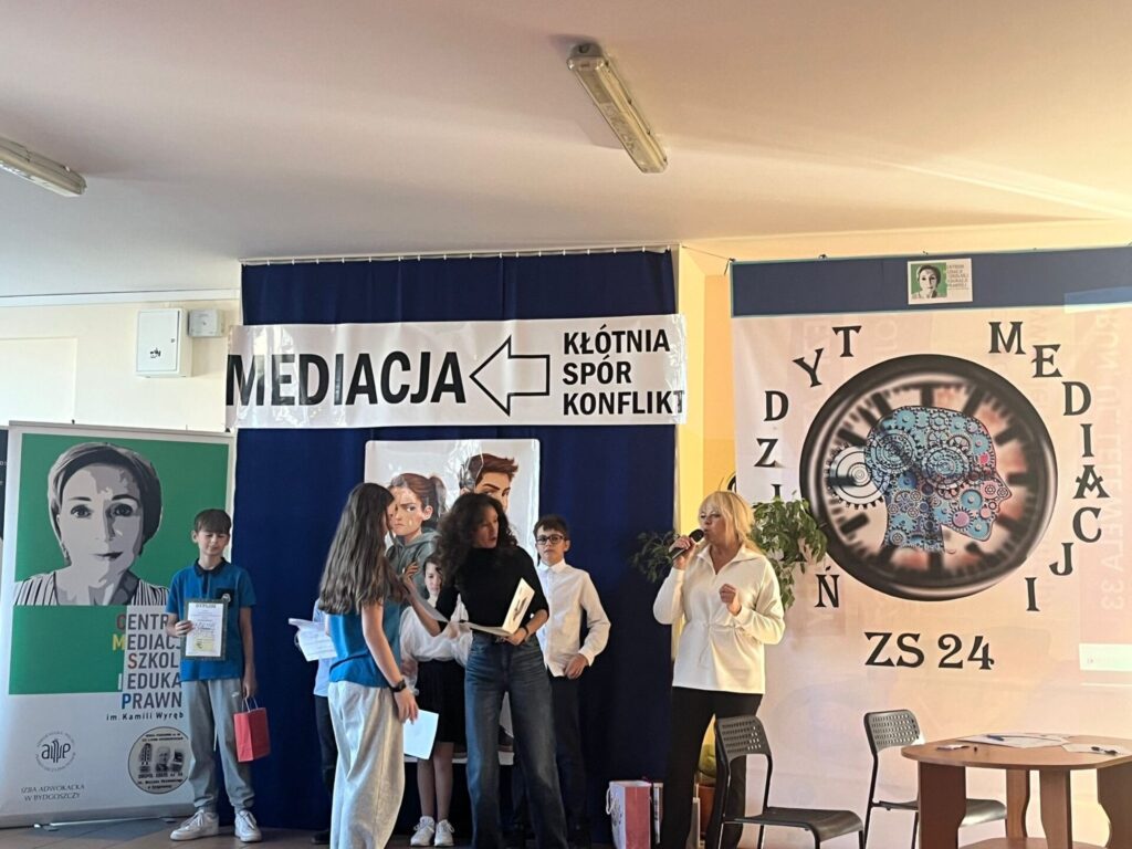 Dwa hasła:,, Mediacje=zgoda + dobre relacje” oraz ,,Niezgoda rujnuje, MEDIACJA buduje” stały się myślami przewodnimi obchodów Dnia Mediacji w ZS24.