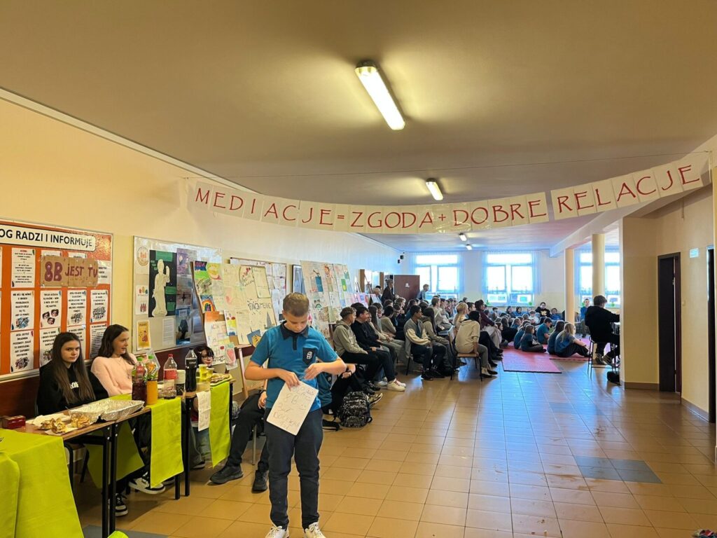 Na koniec można było posmakować słodkości w przygotowanej ZGODNIE i wspólnymi siłami wszystkich klas kawiarence mediacyjnej.