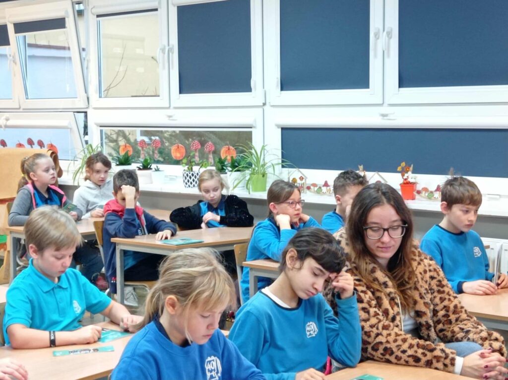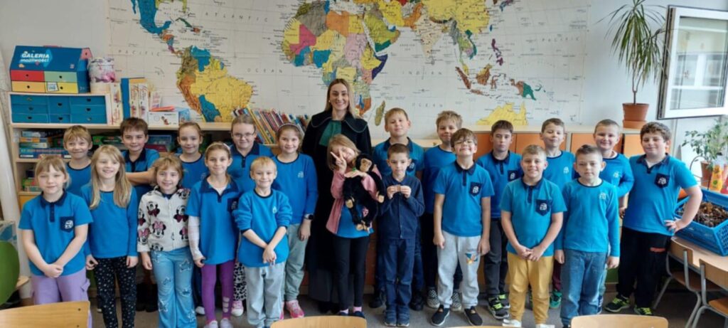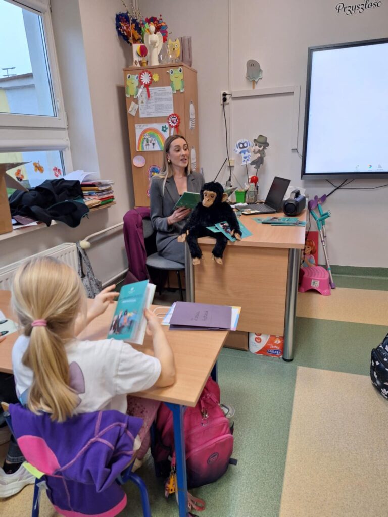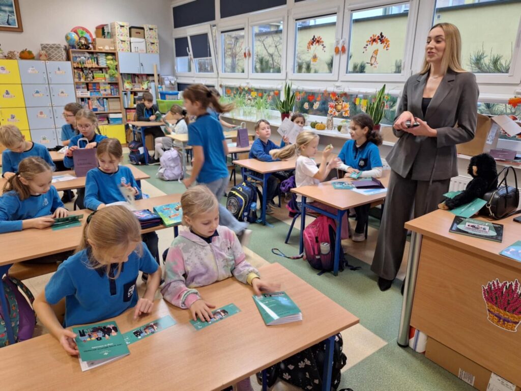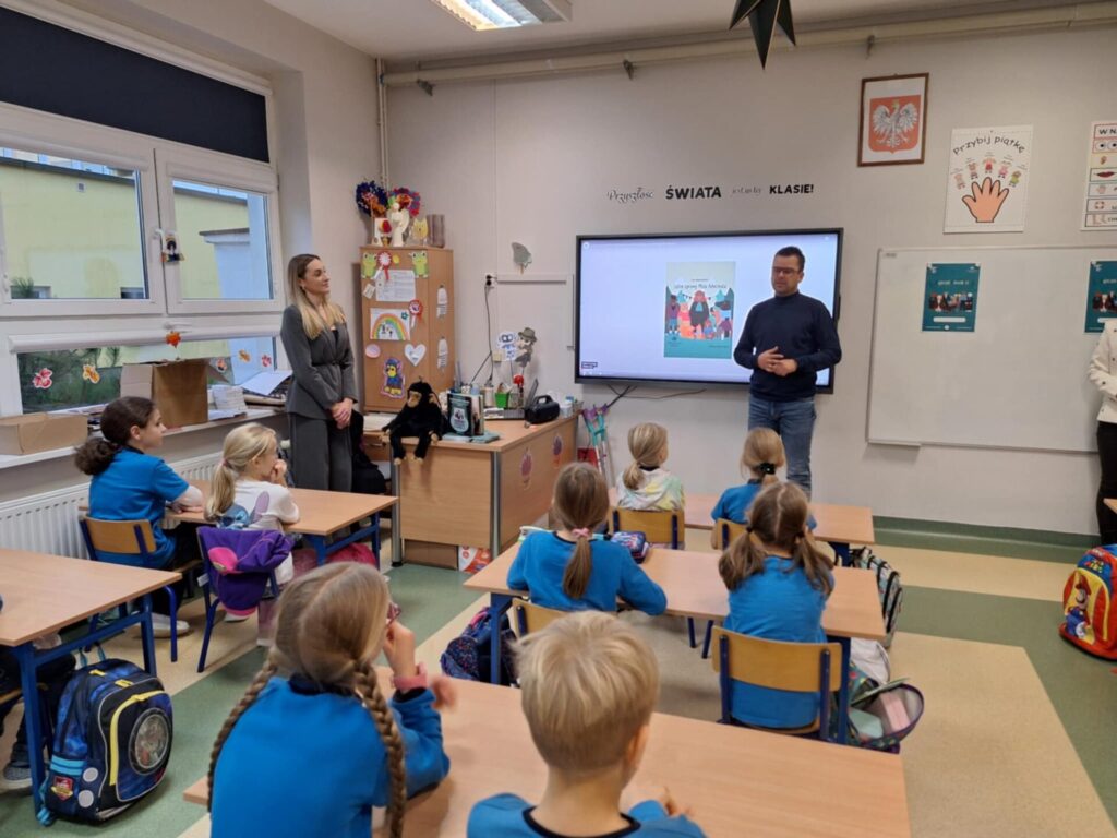 Dzisiejszy dzień na długo pozostanie w pamięci uczniów klas 2 i 3, którzy mieli okazję spotkać się z adwokat Natalią Bartosińską. W ramach wizyty pani mecenas opowiedziała dzieciom o ogólnopolskiej inicjatywie „Bajeczni Adwokaci 3.0” – projekcie organizowanym przez adwokatów z całej Polski, mającym na celu przybliżenie najmłodszym zagadnień związanych z prawem poprzez wspólne czytanie i rozmowę.