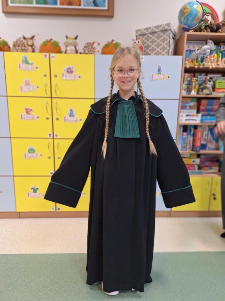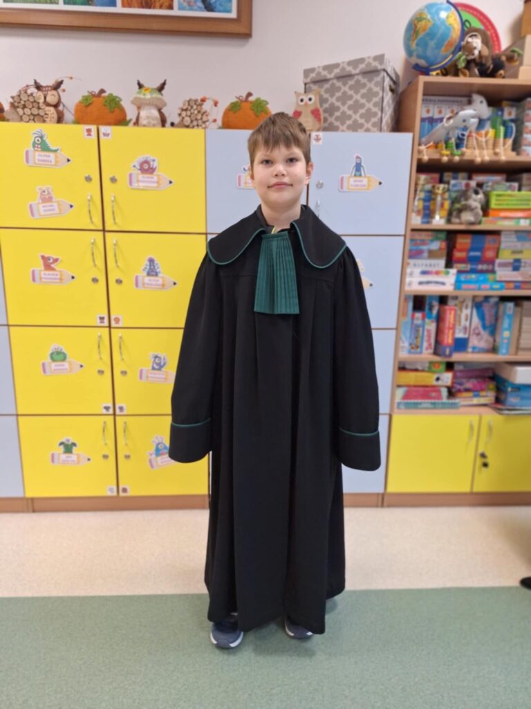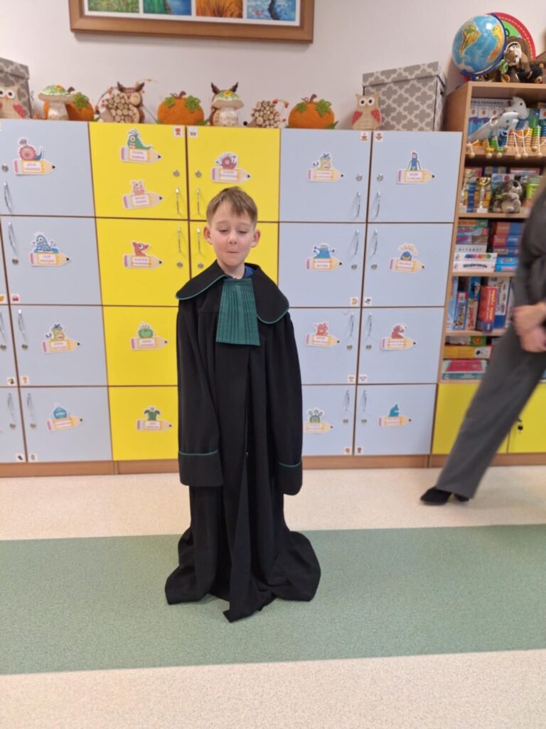 Spotkanie było nie tylko niezwykle merytoryczne, ale także pełne ciepła i ciekawostek. Dzieci z ogromną uwagą słuchały opowiadania oraz zadawały liczne pytania – zarówno o pracę adwokata, jak i o sytuacje, w których prawo może pomóc w codziennych problemach. Zaangażowanie uczniów pokazało, jak wielkie znaczenie mają takie inicjatywy edukacyjne.