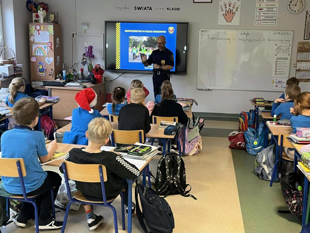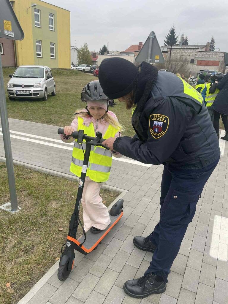 Z tej okazji nasi uczniowie brali wcześniej udział w szkolnym konkursie „Świeć przykładem- moc odblasku” oraz uczestniczyli w zajęciach edukacyjnych prowadzonych przez strażników miejskich. Osobiście mogli również doświadczyć istotę przestrzegania zasad bezpieczeństwa ruchu drogowego.